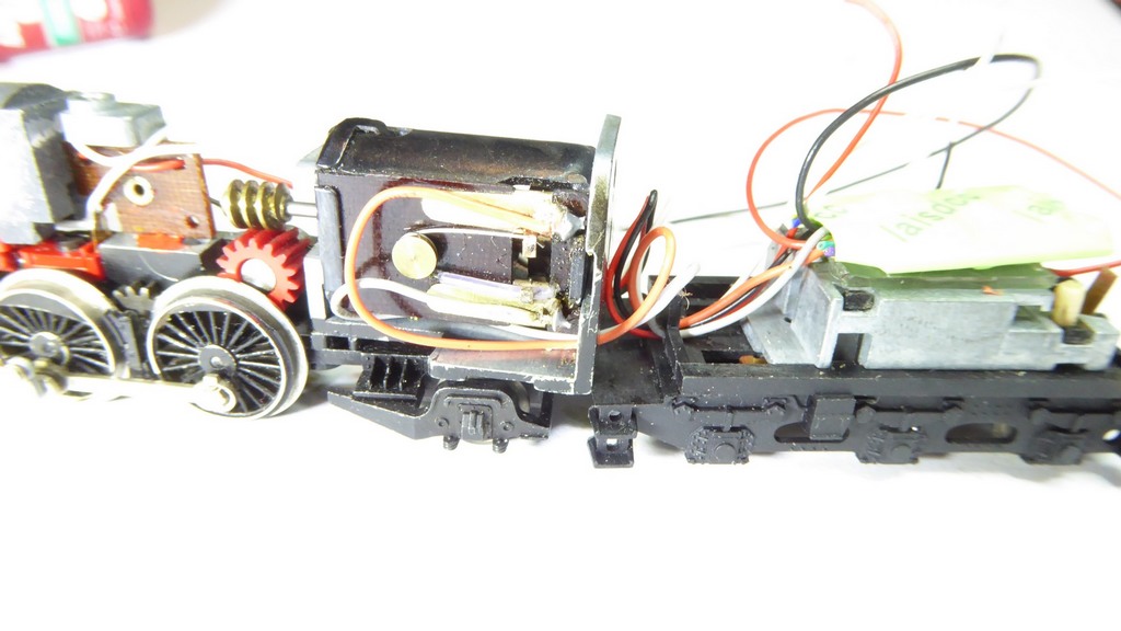 Close up shot of the wiring to the motor from the DCC chip in the tender |