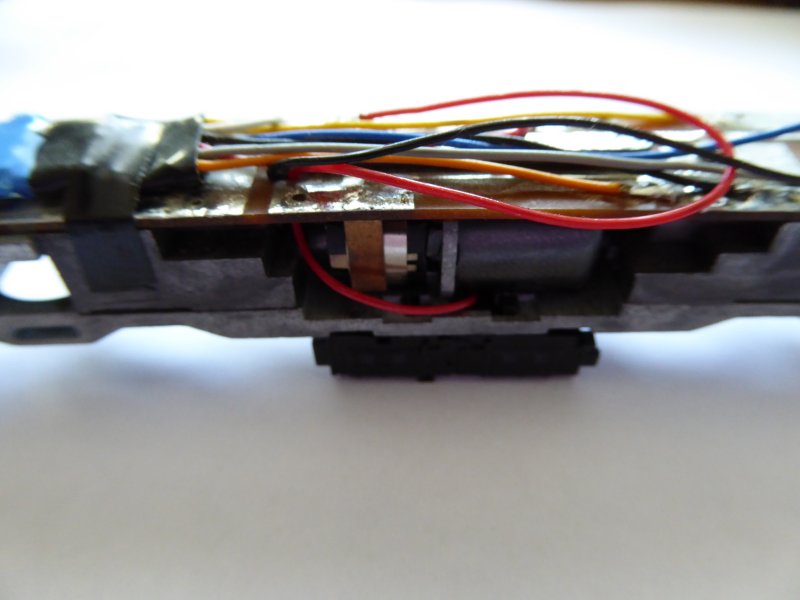 Another shot of the motor, the motor earth wire and the green +ve track feed