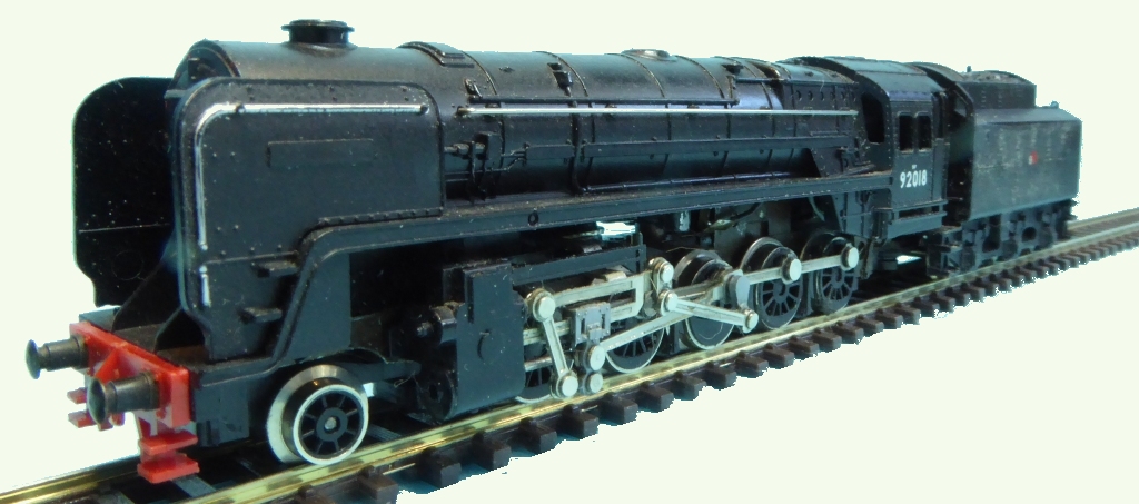 Hornby were always trying to find ways to introduce new models without having to take the brunt of the initial set-up and tooling costs. By 1975 the 6 models to date had all used chassis that could be traced back to German models that were already available on the market. Here was a model that may be possible to modify easily to represent the the extremely successful real life 2-10-0 Class 9F designed by Robert Riddles. They were used successfully for very heavy freight trains and proved to be entirely suited for passenger trains, reaching speeds of up to 90 mph. The locos were withdrawn from service between 1964 and 1968 and the last ever steam locomotive to be built by British Rail was a 9F - the only one to be painted in BR Green - 92220 Evening Star. In the Hornby Minitrix model, there had to be compromises and for purists,