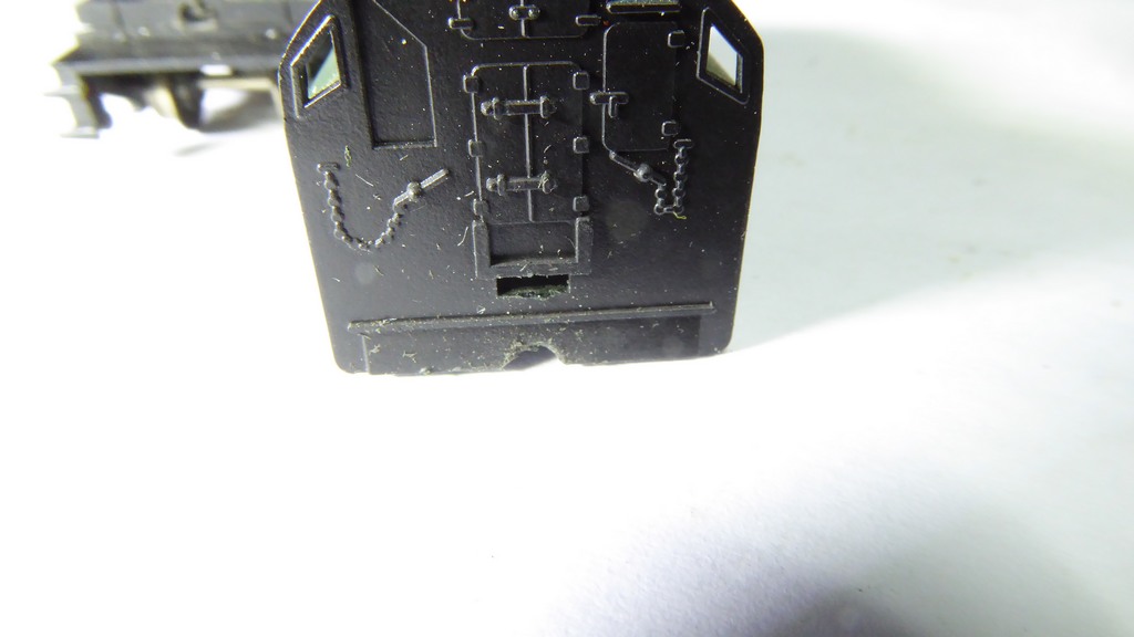 And the hole in the base of the tender body needs to be widened to match. Extra nicks will be required if you drilled a couple of smaller holes on either side of the chassis. |